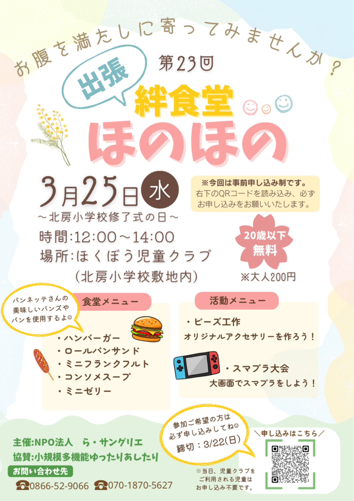 来月も🌷絆食堂 ほのほの🌷を予定しておりますので、ぜひ、お越しください🎵