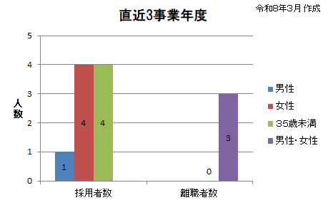 【直近3事業年度の新卒者等の採用者数・離職者数・平均継続勤務年数】